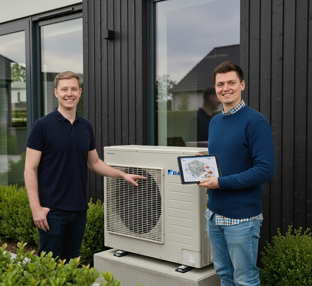 Die Idee entstand auf einer Reise nach Norwegen – dort heizen schon über 60 % der Haushalte mit modernen Klimaanlagen.